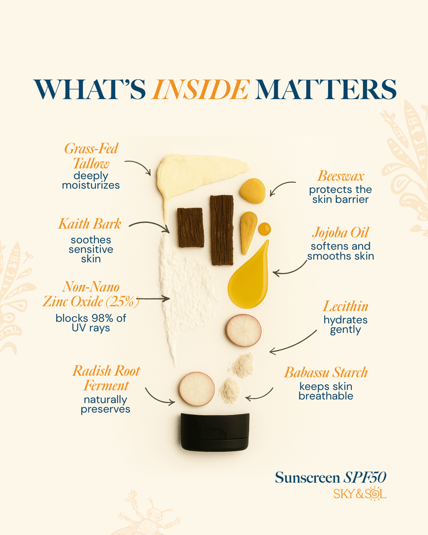 At Sky & Sol, you have the right to know exactly what goes on your skin. In an industry full of hidden ingredients and half-truths, we stand for complete transparency you can trust.