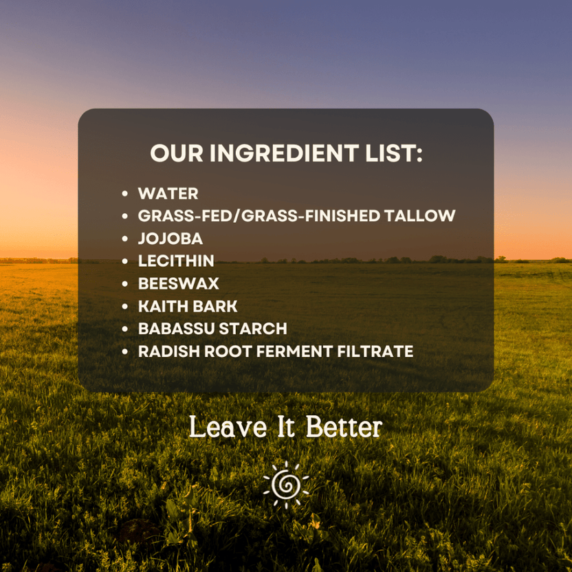 We source our tallow from regenerative pastures in Australia, where cattle are 100% grass-fed and grass-finished, and the fields are not treated with synthetic pesticides.